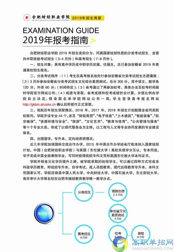 合肥财经职业学院是经安徽省政府批准,国家教育部备案的全日制高等职业院校。学院位于国家科教名城、创新之都合肥市经济技术开发区大学城方兴大道上,毗邻安徽大学、合肥工业大学等知名高校。学院占地面积841亩,建筑面积27万平方米。目前,各级各类在校生12000余人,其中全日制高职在校生9267人,五年制及继续教育学生1298人。教职员工518人,其中专任教师397人,硕士及以上教师占专任教师比例为53.25%,各级各类教师中副高及以上148人,专任教师中双师素质比例51%。企业兼职教师236人。学院还聘请一批来自中国科技大学、复旦大学、华中科技大学、合肥工业大学、安徽大学、安徽财经大学等知名高校的专家教授到校任教或担任客座教授。基本形成了一支专业理论水平高、实践教学经验丰富的“双师型”教师队伍。
